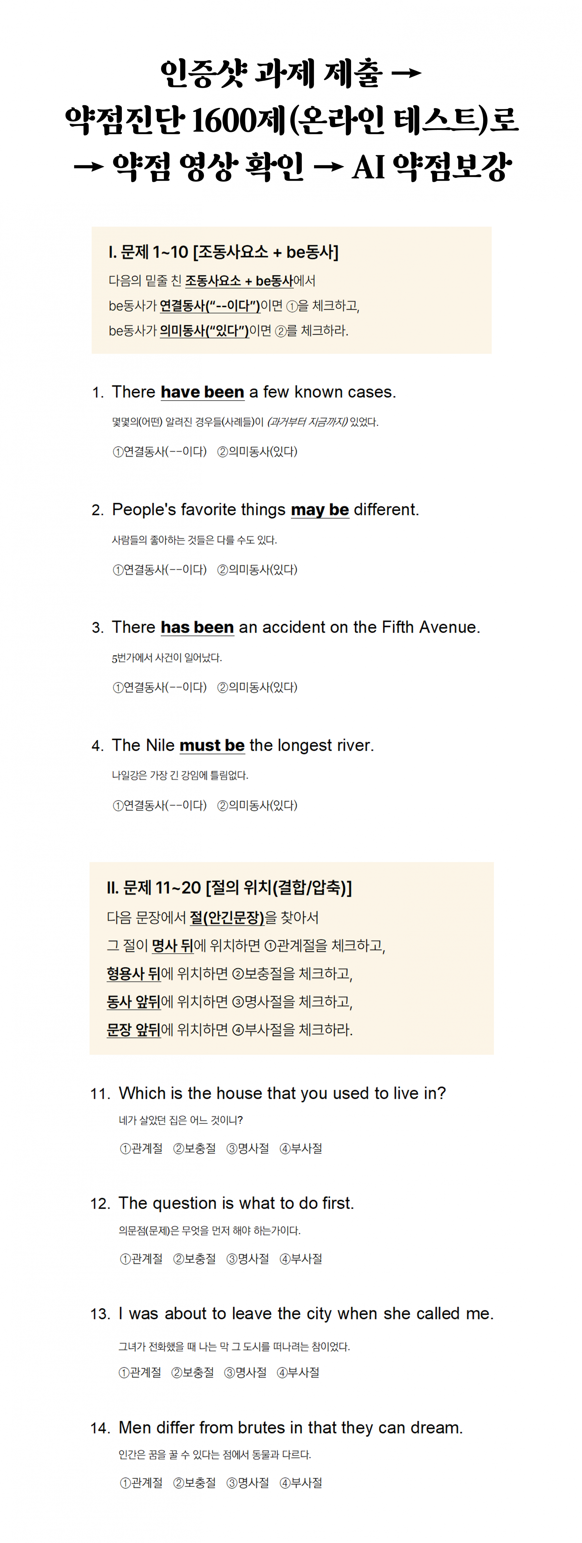 [관리형]● 문장기호A(16회 강좌): 품사부터 절까지를 ‘유닛’으로 연결하고 1600제로 훈련한다